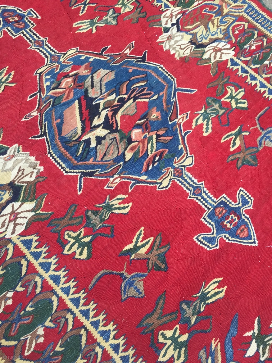 Fine antique Persian Bidjar kilim with roses pattern, size: 200x140cm / 6'6''ft x 4'6''ft