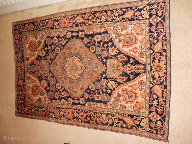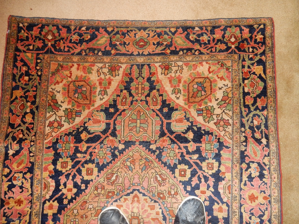 exceptional farahan -fereghan - feraghan sarouk. full lush pile with no repairs , small 3'6" x 5' foot size . best quality wool and dyes with a fine green