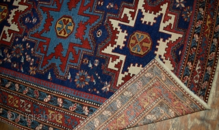 #1B516  Handmade antique Caucasian Lezgi rug 3.7' x 5.3' ( 113cm x 161cm ) C.1880