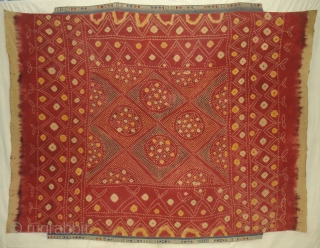 Single Bandh Tie and Dye Odhani From Shekhawati District of Rajasthan. India.Its Very rare Single Bandh Tie and Dye Odhani. Natural Colours On the Khadi Cotton.C.1900.Its size is 145CmX200cm(DSC04960 New).