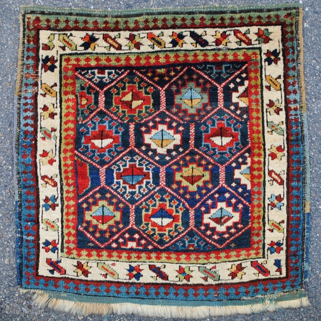 a superb piled Shah Sevan bag with a design often found in sumac bags. Great range of colors and sparkling wool.