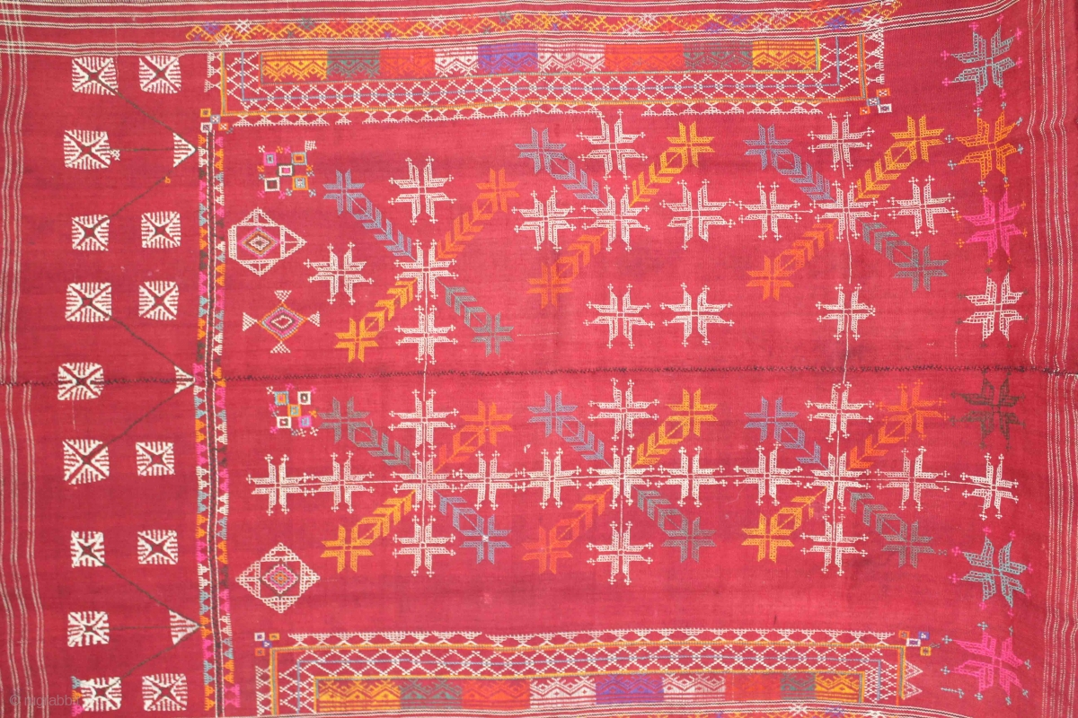 Odhani from Shekhawati wool shawl Distic of Rajasthan India.Hand embroidery ethnic folk handloom handmade old rare shawl.Its size is 142cm x 192cm.About the Condition Some original repairs.(DSL01860).