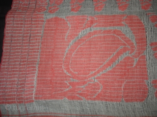 Jamdani Finest Muslin Cotton Sari, From Dhaka District of Bangladesh.North-East India. Jamdani was originally known as Dhakai named after the city of Dhaka, Jamdani is Persian deriving name from 'Jam', meaning flower, and 'Dani', a vase or a container, named after decorative floral patterns found on Dhakai textile. Jamdanis are popularly known as Dhakai Jamdani or simply Dhakai. Its size is 102X380cm (dsc04590 New).