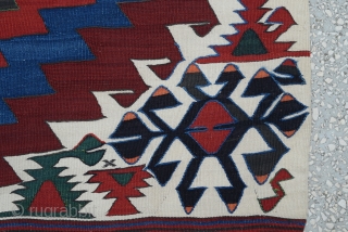 Featuring the classic palette of central Anatolian flatweaves, the boldly patterned kilim originates in the Karapinar region of Anatolia.