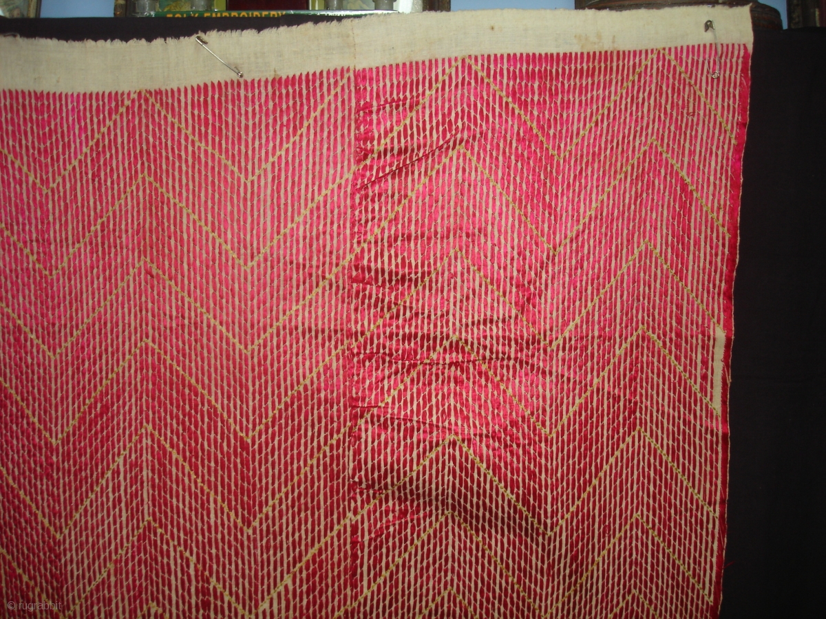 Phulkari From West(Pakistan)Punjab. India.Known As Chawal Buti Thirma Bagh.Very Rare influence of Lahariya Design Chawal Buti Thirma Bagh(DSC03994 New).
