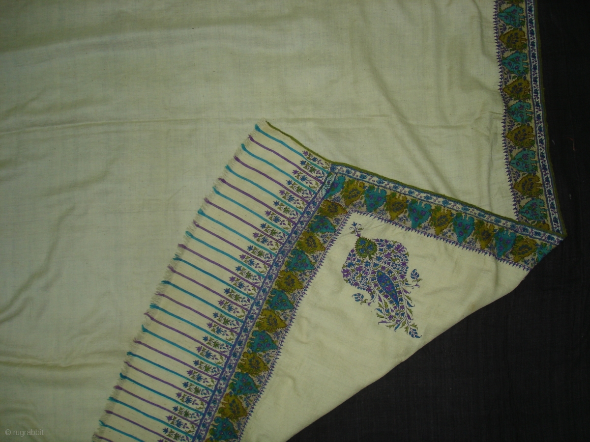 Dorukha Palledar shawl (Pashmina Wool)with Doranga Embroidery From Bengal, India.C.1870.Its size is 130cmX315cm. Good condition(DSC05467 New).