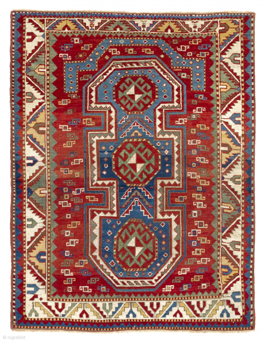 Caucasian Kazak Prayer Rug, 45x59 inches (115x150 cm), ca 1875