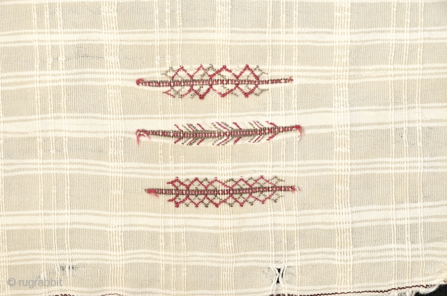 Exceptional and Rare small girl/woman's Haik from Morocco - Southern region around Tafroute. 19th century and incredibly fine spinning to wool cloth - almost transparent light weave with spare use of silk brocade motifs.
