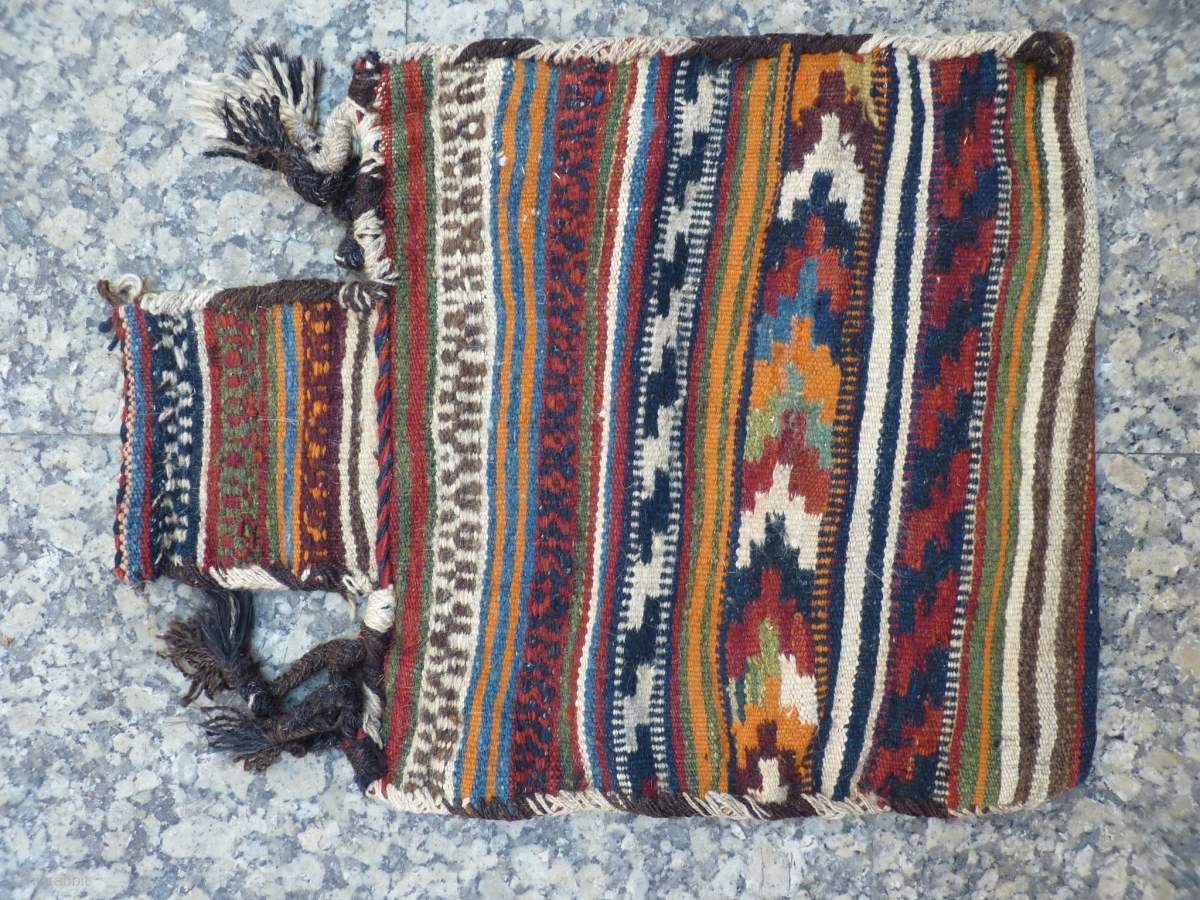 sw Iran salt bag, 60x47cms, good original condition with goat wool binding and warp and warp continuation straps, nice colours, good for storing a lot of salt or invoices inside.