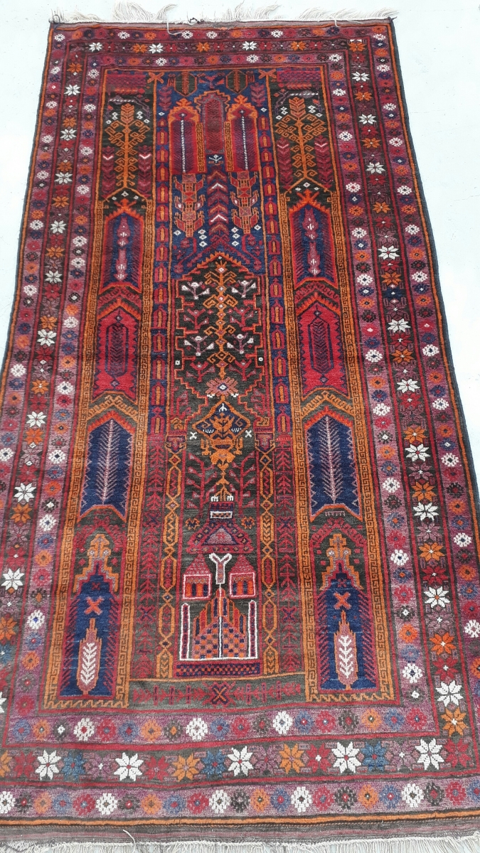 Balochi carpet with very rich colors and vegetable and synthetic dyes. Size 275x135 cm