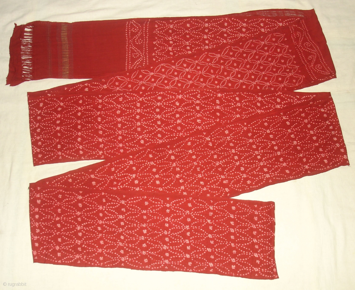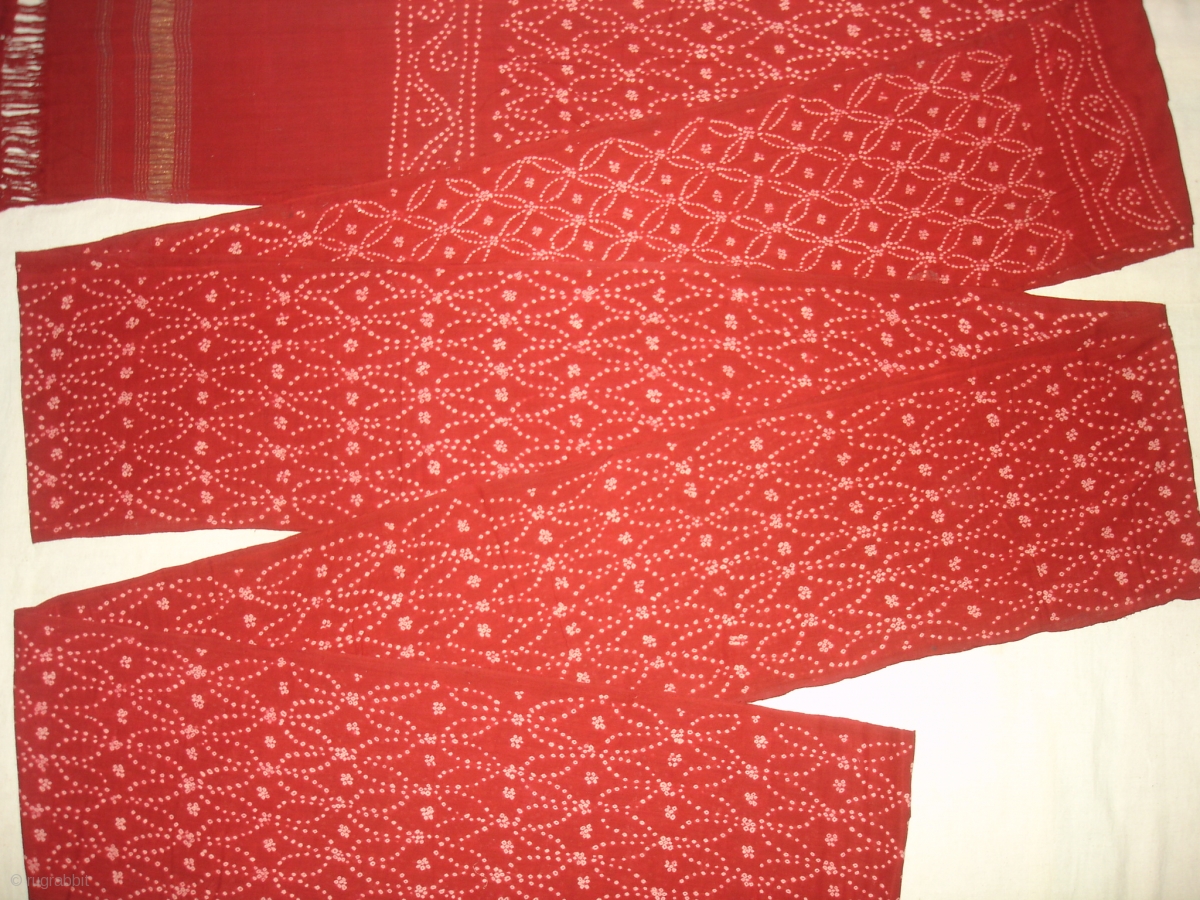 Turban Tie and Dye,Khadi-cotton,with Gold Brocade Edge.Natural Colour's. From Kutch,Gujarat , India.Perfect condition.Size is 10 Meters (dsc05537 New).