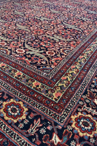 This very heavy, all wool carpet pre dates the more common late 19th century Bijar production.