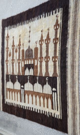 Southeast Anatolian-early 20th century-Angora goat hair on cotton string warps-in good condition-unusual- Siirt Size:132 x 180 Cm