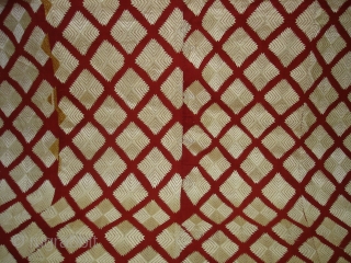 Phulkari From West(Pakistan)Punjab.India.known As Chand Bagh.This were mainly used as Woman's head-cover(bagh).Showing the Beautiful Mehrab(Prayer Arch)Design In the Borders.Very Rare Design Bagh(DSC08680 New).