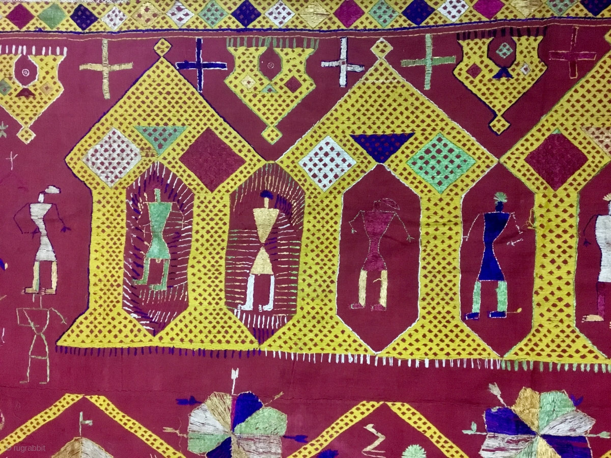 Vintage Indian phulkari called Darshan darwaja from Punjab India.it is one of the rare form of phulkari called darshan darwaja with figured wok the bagh is in good condition.
