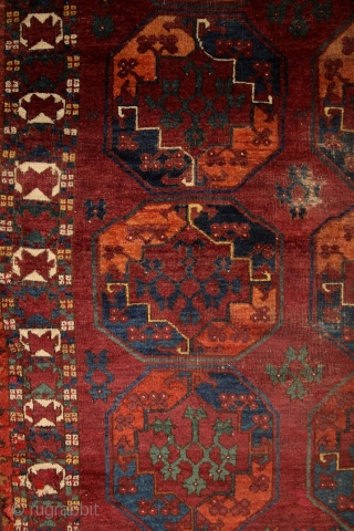 Mystic star constellations over the ersari turkmens... free, raw and archaic tribal exampe. Bats? Butterflies? all around... deep, saturated, organic colors, different yellows, greens, blues... partly worn, but still good pile at many places, especially meaty borders. Freshly washed, ready to display/use. More pieces here: http://rugrabbit.com/profile/5160
