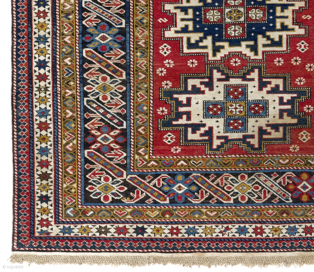 Antique Caucasian Chi Chi Rug with Lesghi Stars (or a Lesghi Rug with Chi Chi border?). 4x6.3 Ft (120x190 cm), ca 1890-1900. Original braided ends, sides and foundation, minor insignificant repiling on some of blacks otherwise in excellent original condition. Please email for a super high resolution image and a super low price!..