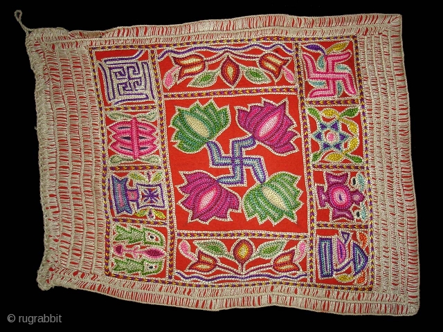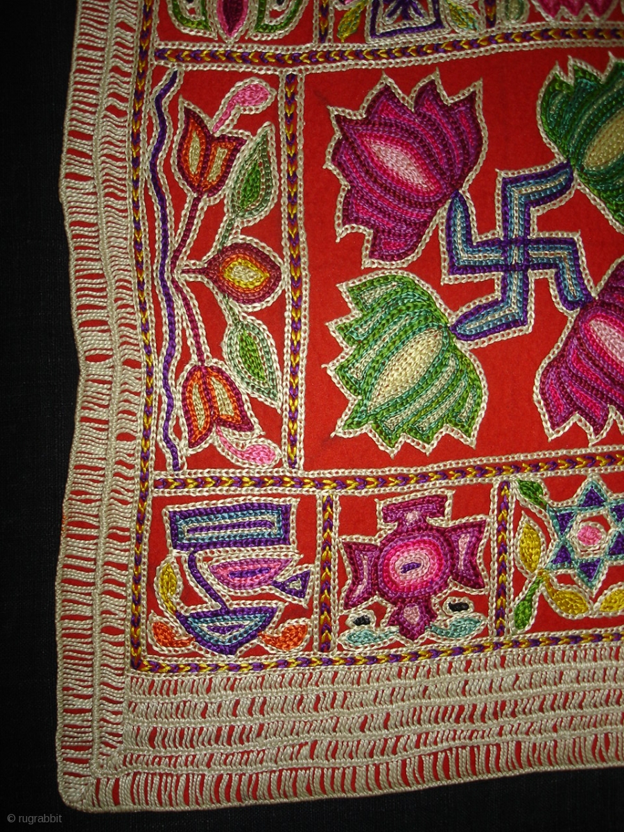 Jain Shrine cloth Ashtamangal, Mochi embroidered Silk on wool, From Gujarat,India.Its Its size is 27x34cm.C.1900. Condition is very good(DSC08909 New).