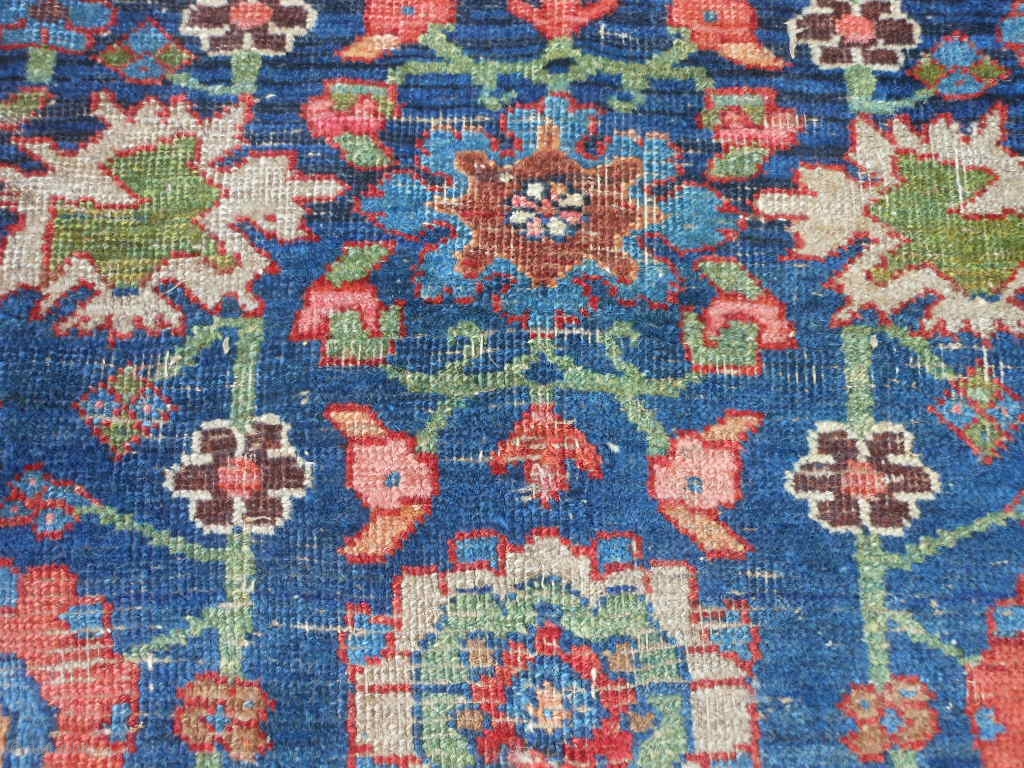 Persian Kurd Bidjar, late 19th century, 3-9 x 6-4 (1.14 x 1.93), thick and heavy, rug has been hand washed, wear, missing guard borders both ends, Mina Khani design, great colors, plus shipping.