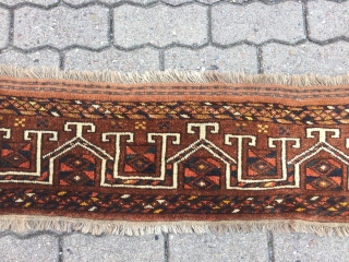 Antique Turkmen Ersari Germech. a Germech is a tent door skirt that hangs below an Ensi, these weavings are rather rare. Size: ca. 125x30cm / 4'1''ft x 1ft