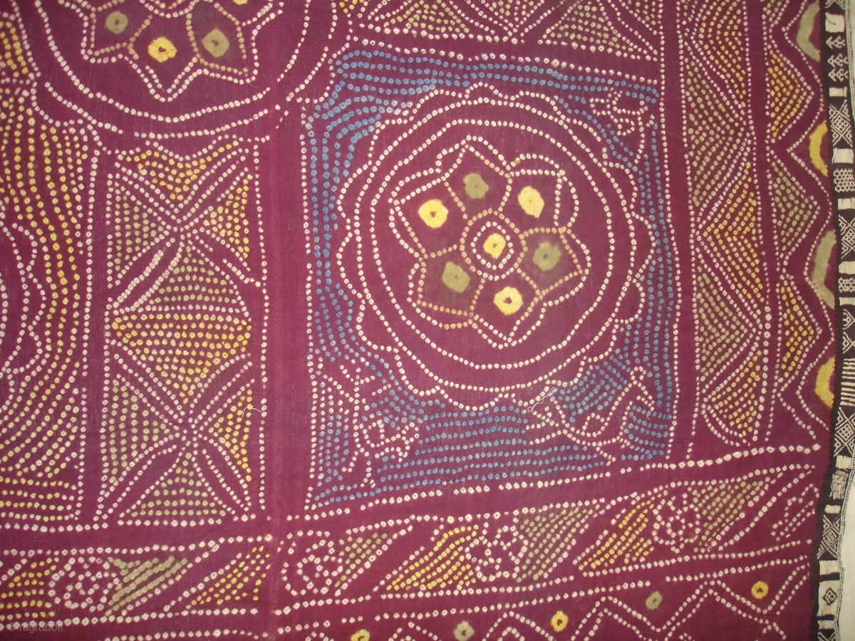 Single Bandh Tie and Dye Odhani From Shekhawati District of Rajasthan. India.Its Very rare Single Bandh Tie and Dye Odhani. Natural Colours On the Khadi Cotton.C.1900.Its size is 143CmX187cm(DSC04975 New).