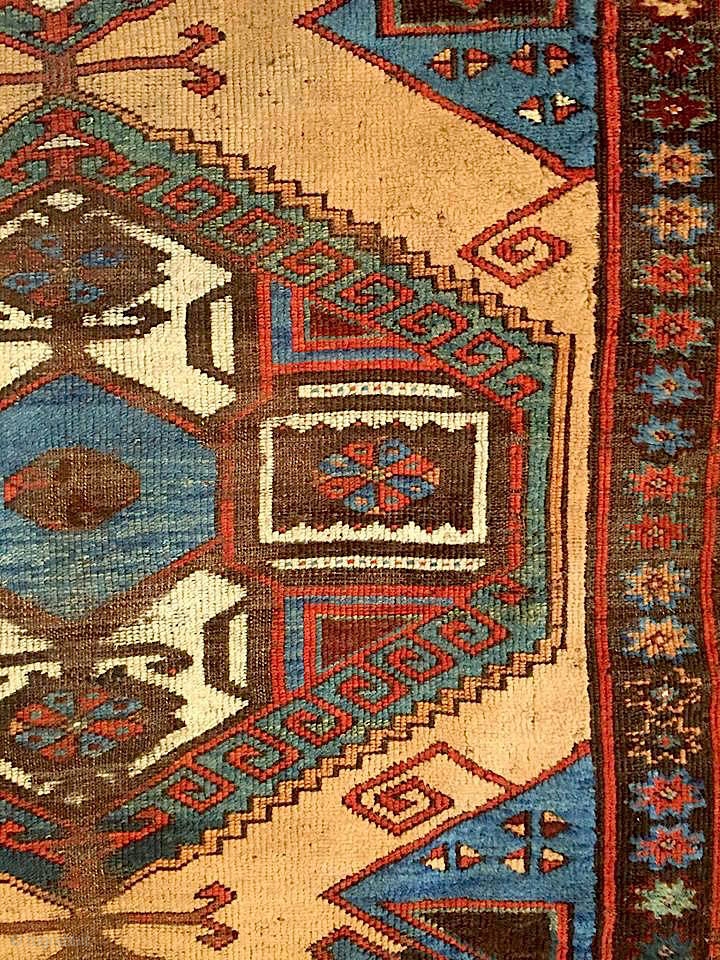 a shining icy blue/turquise oasis floating in the middle of the sand desert (undyed camel-hair wool) Charismatic Karapinar village rug, mid 19th century, Central Anatolia. a real village piece with rural touch but still sophisticated drawing. Corrosion to the browns as usual, otherwise quiet well preserved. More pieces: http://rugrabbit.com/profile/5160