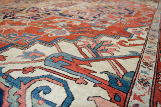 More info: https://sharafiandco.com/product/antique-serapi-carpet-394x293cm/