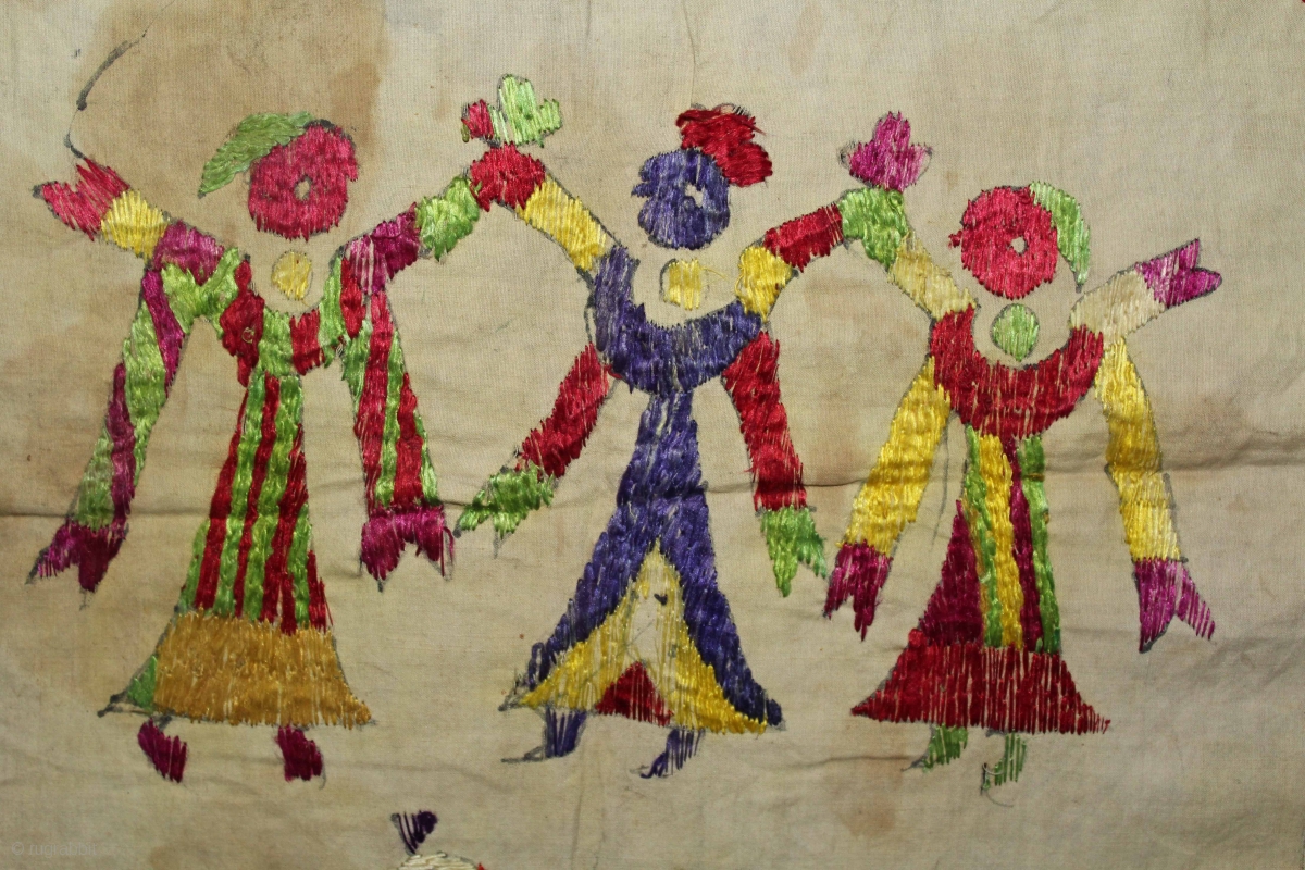 Chamba Rumal from Himachal Pradesh India.Krishna in the center and both side Gopis. Cotton Silk Embroidered.Its size is 40cm x 40cm.(DSL02080).