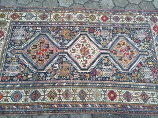 Antique Shekarlu Qashqai tribal rug from Southwest-Persia with lots of birds and animals, age: circa 1900. size: ca. 235x135cm / 7'7''ft x 4'4''ft , little damage from World War ii in one corner, otherwise good condition, www.najib.de