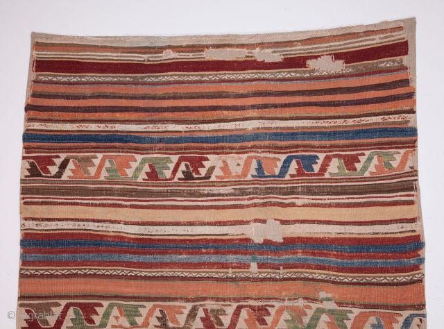Central Anatolian kilim. Mid 19th century (?). Beautiful, soft pastel colors. Expertly backed with a high quality linen. Ready for display or even use. It has a soft presence. 317x140cms