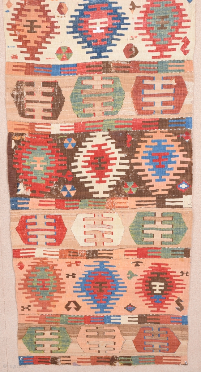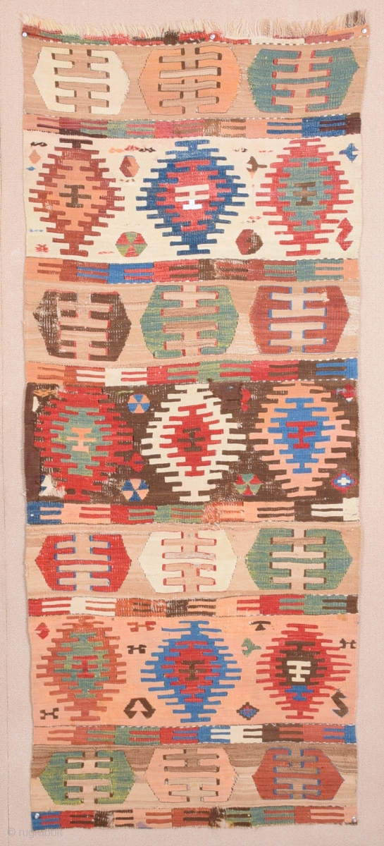 Circa 1800s Anatolian Sivas Kilim Fragment.The Color of the Combination is Perfect.Size 75 x 185 Cm