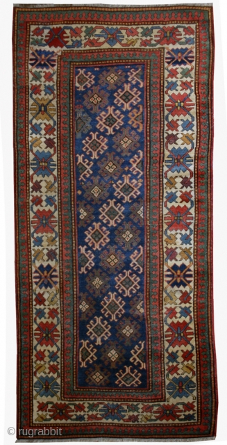 #1B522  handmade antique Caucasian Gendje rug 3.2' x 8' ( 97cm x 244cm ) 1880.C
