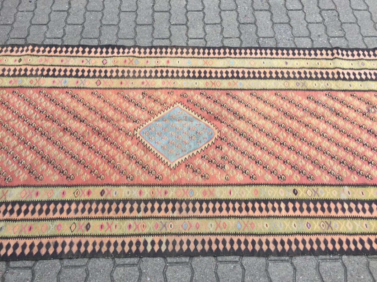 Very long antique Persian Zand kilim from West-Persia, size: ca. 480x113cm / 15'8''ft x 3'7''ft , age: circa 1910-1920