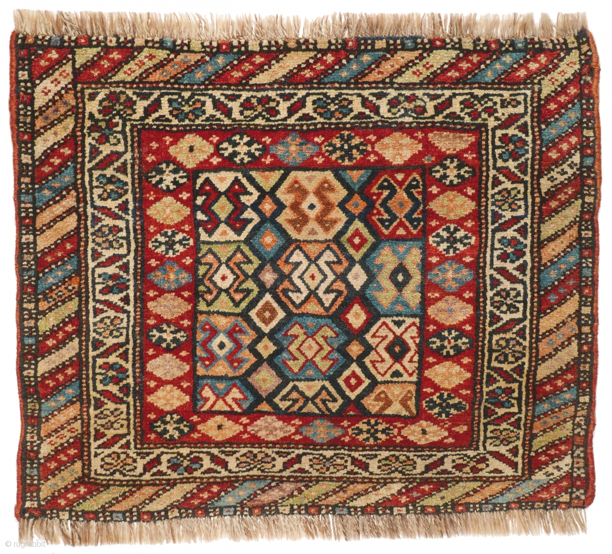 # 1101 Outstanding Kurdish Khorjin Front, 58/71 cm, Kurdistan, late 19th century, rare field design, great colour palette, very good condition! For a complete overview of our Autumn Exhibition 2017 please look at our website: http://www.oriental-textile-art.de/en/g_exhibition.htm