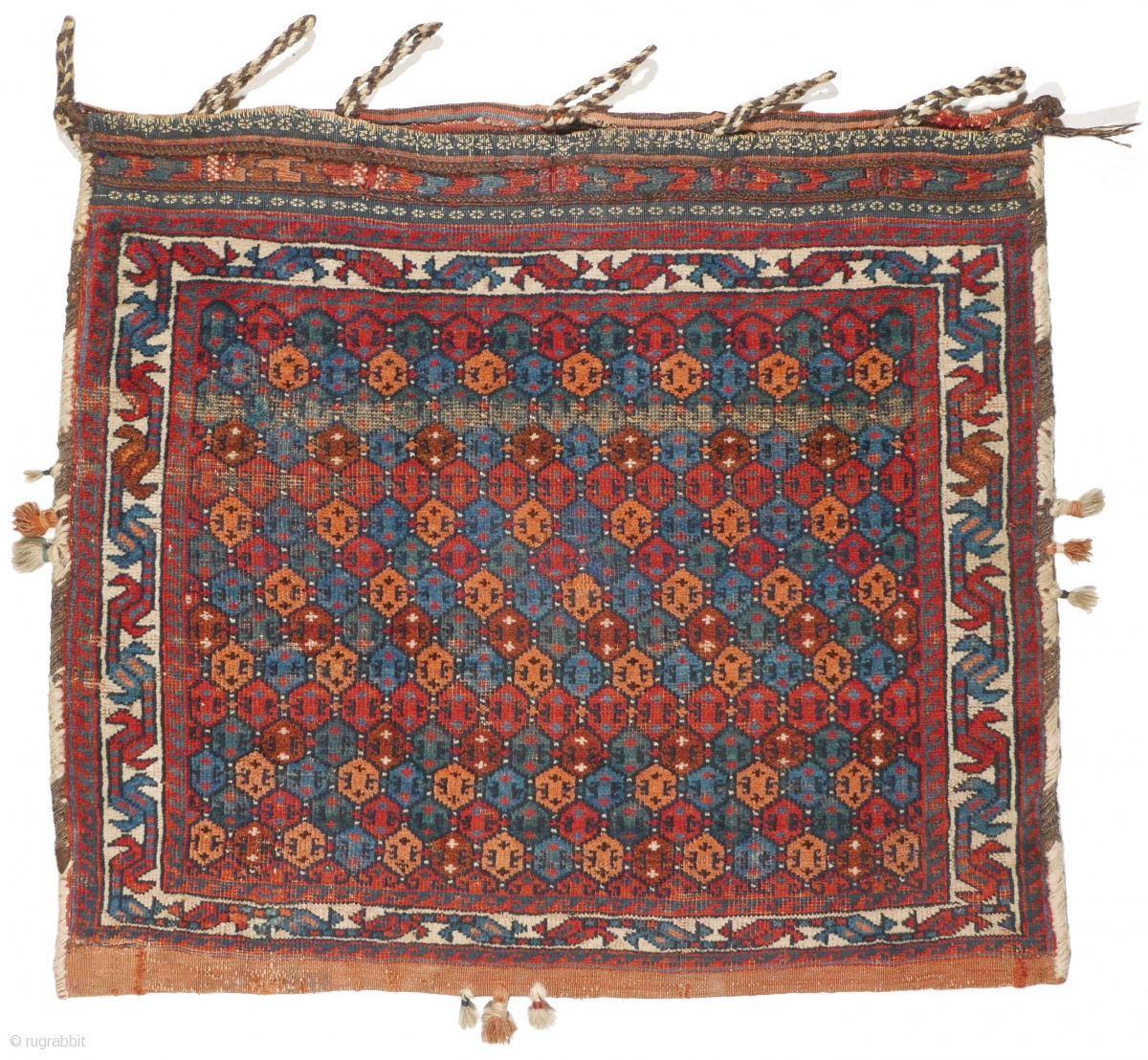 # 1104 Rare Afshar Khorjin Half, 72/63 cm, Varamin area, late 19th century, minimalistic field design, attractive natural dyes, fair pile, min. resto., now in good condition! For a complete overview of our Autumn Exhibition 2017 please look at our website: http://www.oriental-textile-art.de/en/g_exhibition.htm
