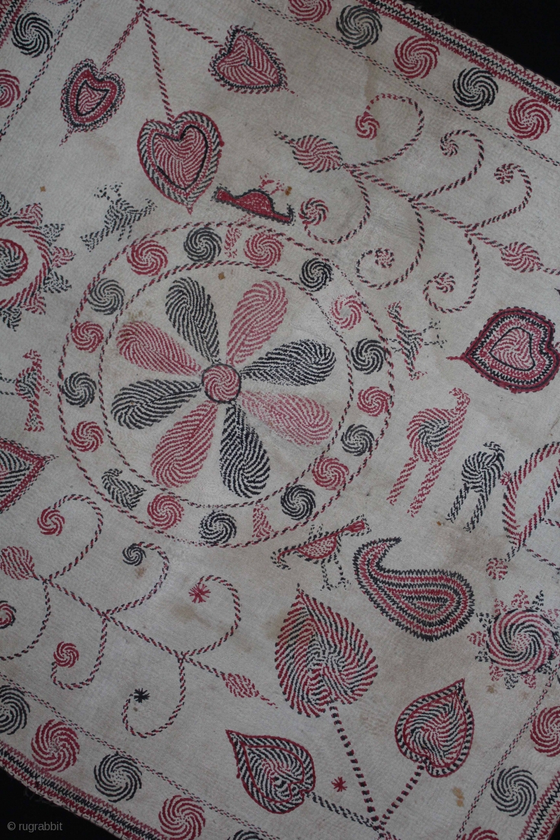 Vintage Kantha embroidery with cotton thread Kantha Probably From East Bengal(Bangladesh)Region India.C.1900.Its size is 66cm x 67cm.(DSL02140).