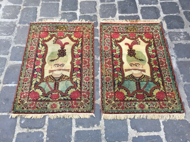 kirman laver pair dated 1333 Hijri excellent condition pictorial Shah Abbas