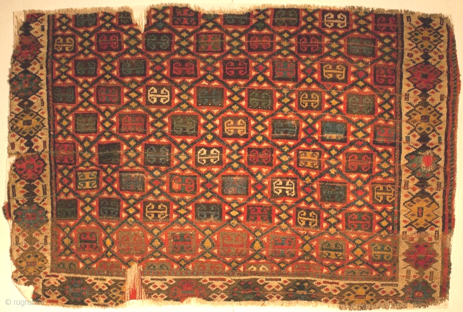 The last picture is of a fragment in the Konya Museum (not part of my sale) a well-seasoned rug dealer wrote to me and said it might be Southwest Persian Qashgai. Any other ideas out there?