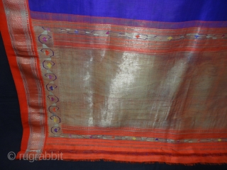 Paithani Sari, It’s an silk and zari weave sari, Its named after the Paithan town in Aurangabad Maharashtra state of India. Where they are woven by hand. Made from very fine silk, It’s in very big size sari, its size is 126cmX764cm(DSC01828 New).