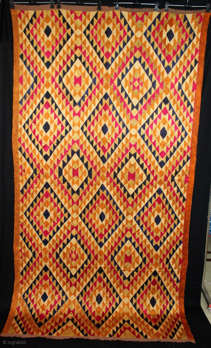 Phulkari From West(Pakistan)Punjab India Called As Panchrangi Bagh. Beautiful colour Combination of Panchrangi (Five Coloured One). One of the rare design in Indian Phulkari.(DSE02200)