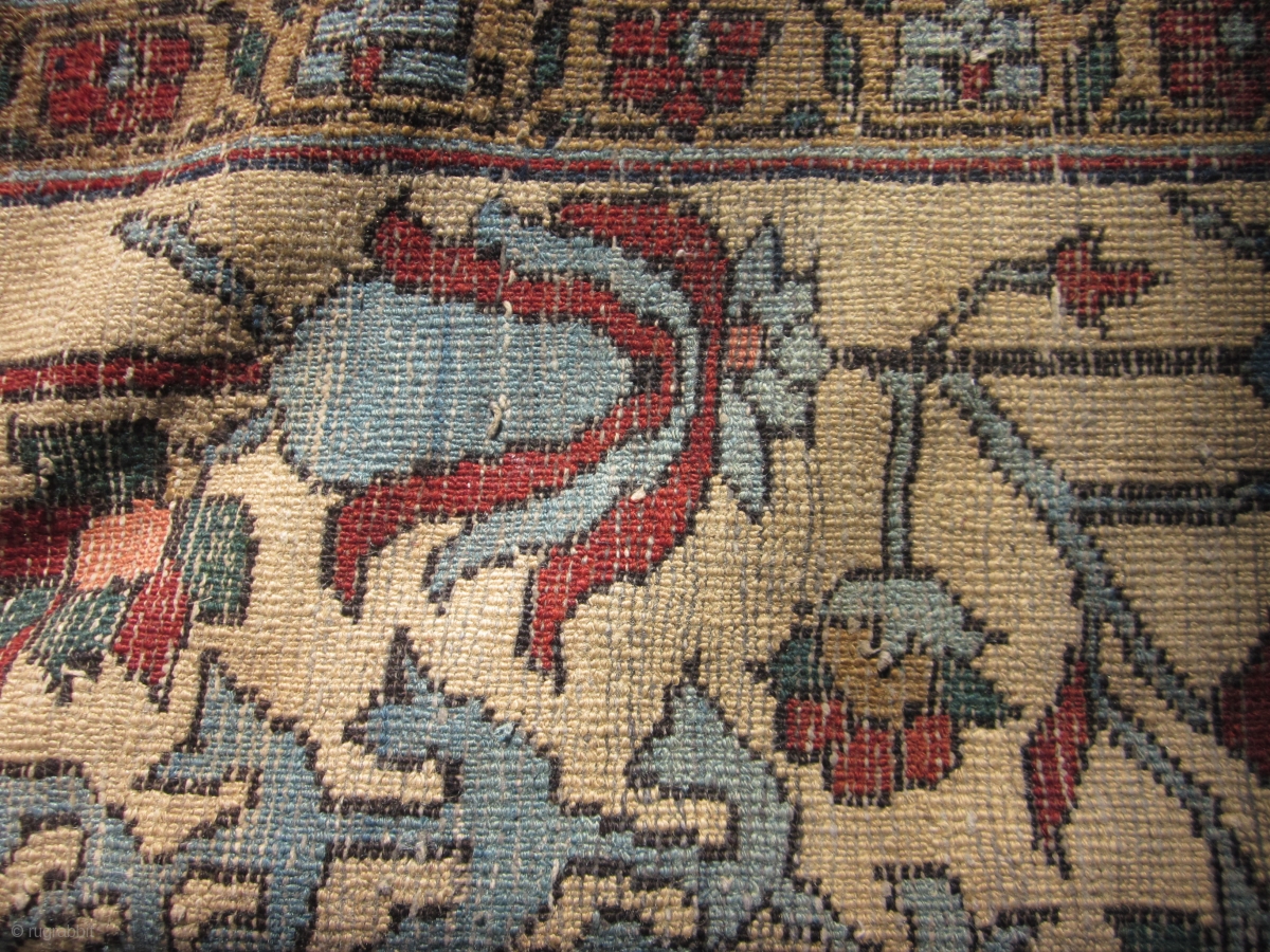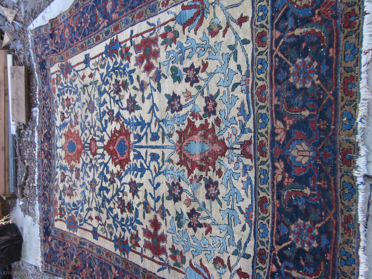 heriz with a square size of 11 x 12 ft and good pile with some minor end and moth damage