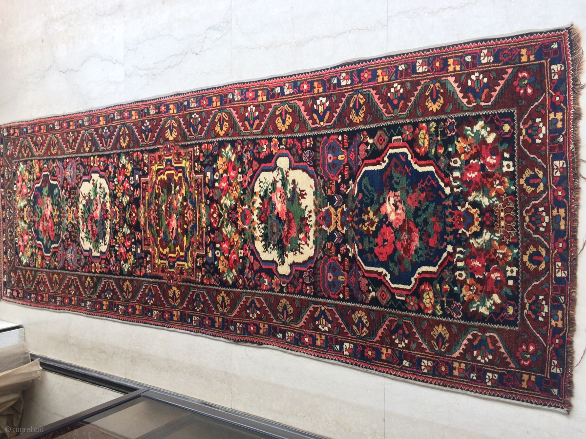 Antique bakhtiri fara dumbeh 365x128 cm all wool in mint condition crasy natural colors over 100 year old double weft and very fine wool nuts. Unique and unusual collector rug.