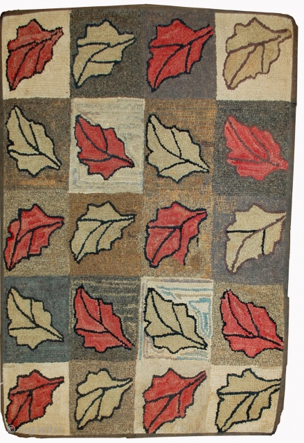 #1B500 Hand made antique American hooked rug 2.2' x 3.4' ( 67cm x 103cm ) 1900.C