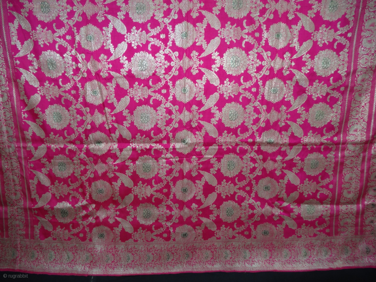 Dupatta handwoven fuchsia silk with zari (Real Silver) from Varanasi, Uttar Pradesh , India. c.1900. Good condition. Its size is 170cmX235cm(DSC06349 New).