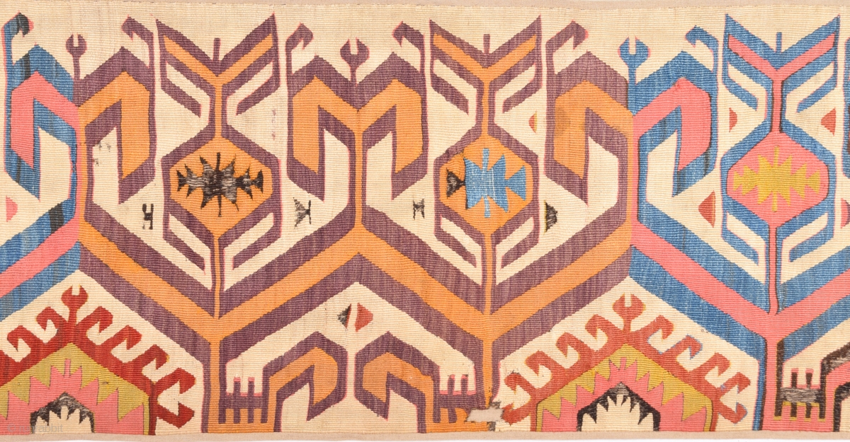 Early 19th Century Unusual Central Anatolian Kilim Fragment Size 57 x 191 Cm