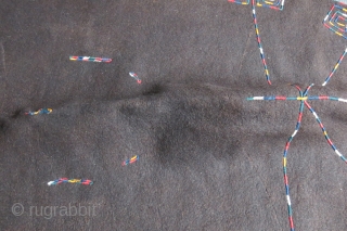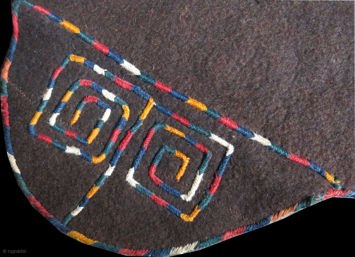 Turkmenistan - Yomud natural brown felt winter ceremonial horse blanket. double needle cross wool embroidery on felt. circa 1900. Size 92" x 75" - 235 cm x 193 cm with side flaps.