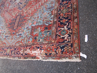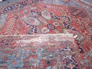 huge heriz rug 10' 5" x 13' 7" great pile super floppy clean one corner have moth damage solid foundation easy repair huge profit otherwise the rug is in very good condition. $3000.00 or best reasonable offer.
