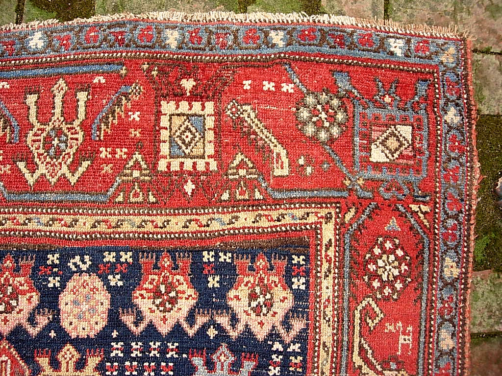 Kurdish. 4 ft 4 in x 7 ft 7 in-- Ancient and beautiful old Kurdish textile possibly 19th century. a rare as well as decorative ethnographic piece. Low but even. Original sides and ends. No repairs. Call for precise condition report: 314 222 1110. $20 ups shipping to lower 48.