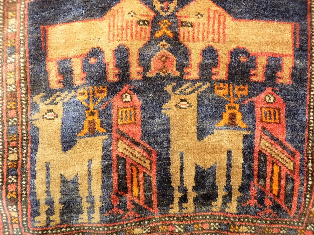 Pair of Belouch Lion bags with two deers (or goats) and two birds. Finely woven with lots of details.