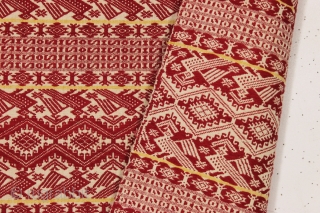 another textile from that local home. Charming design with many many animals. Appears to be old and in very good condition. No dye run. Feels like cotton or linen ground. Very attractive object. 21" x 75"
